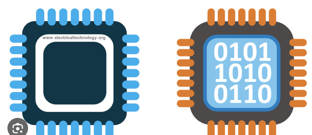 Microprocessors and microcontrollers are programmable chips, with microprocessors handling complex computations and microcontrollers combining processing, memory, and peripherals for embedded applications.